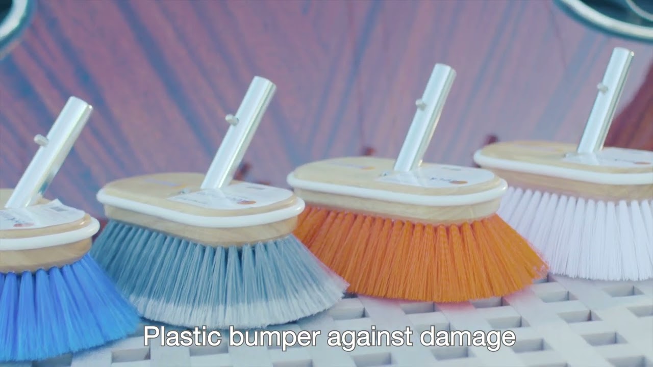 Deckmate küürimishari, pehme 23 cm on valmistatud lakitud lehtpuidust, millel harjamiseks mõeldud karvad on kinnitatud sellise nurga all, et oleks võimalik pääseda ligi raskesti ligipääsetavatesse kohadesse. Varre kinnitamiseks on harjal roostevabast terasest ühendusotsik, millel on vedruga lukustusnupp, mis võimaldab teil mugavalt ühendada harja Deckmate erinevate vartega.