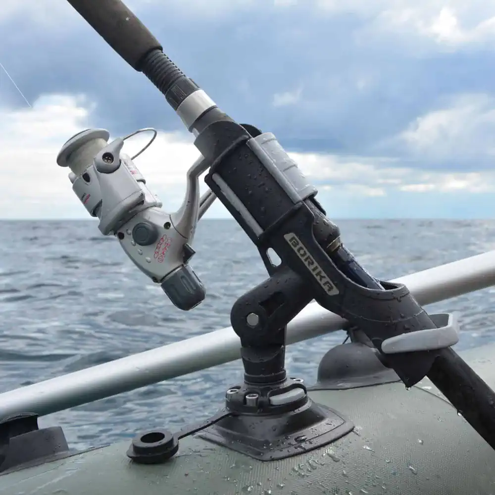 Borika ridvahoidja liimitav komplekt PVC paadi jaoks See tagab usaldusväärselt ridvahoidja kõige mugavamas asendis. Kinnitusdetail on paigaldatud kinnitusplaadi külge ja fikseeritud mis tahes asendis selle telje ümber, mis on sobivalt reguleerida horisondi suhtes kaldega 30 ° astmega ja kindlalt kinnitatud valitud asendisse. Komplektis on kinnitusplaat ja osad veesõiduki täispuhutavale küljele paigaldamiseks.