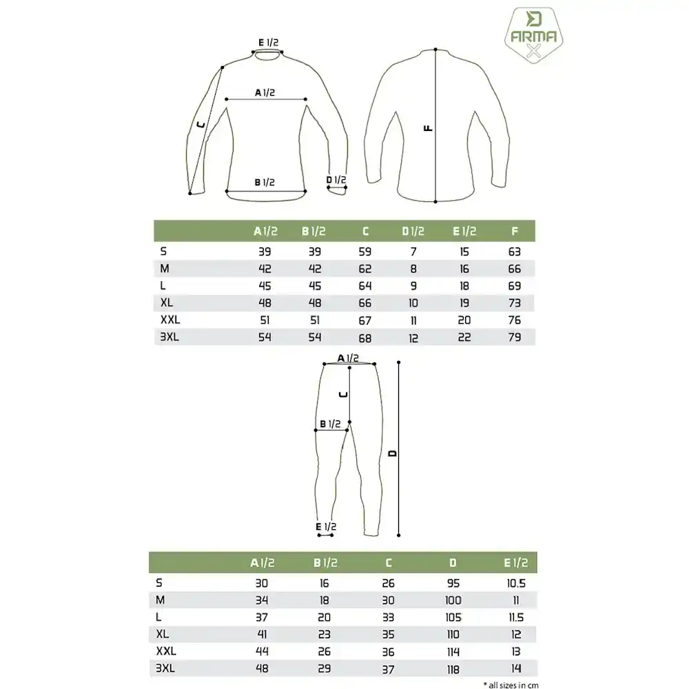 ARMAX on tugevast kangast valmistatud termopesu tüüp, mis on tavalisest palju raskem. Kui eelistate avarat riietust, soovitame valida ühe numbri võrra suurema, kui tavaliselt kannate.