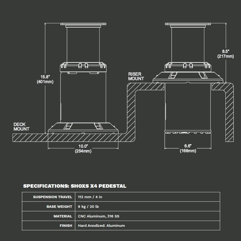 Toolijalg X4-HA on lööke leevendav istmejalg, mis võimaldab teil muuta mis tahes paadiistme põrutust leevendavaks istmeks. Disain põhineb maailma parimatel löökide leevendamise militaartehnoloogiatel. Antud tehnoloogiad on pakitud selle kompaktsesse seadmesse, mis integreerub kõigi turul saadaolevate istmetega. Kõik X4 istmejalad on varustatud vedrustusega.