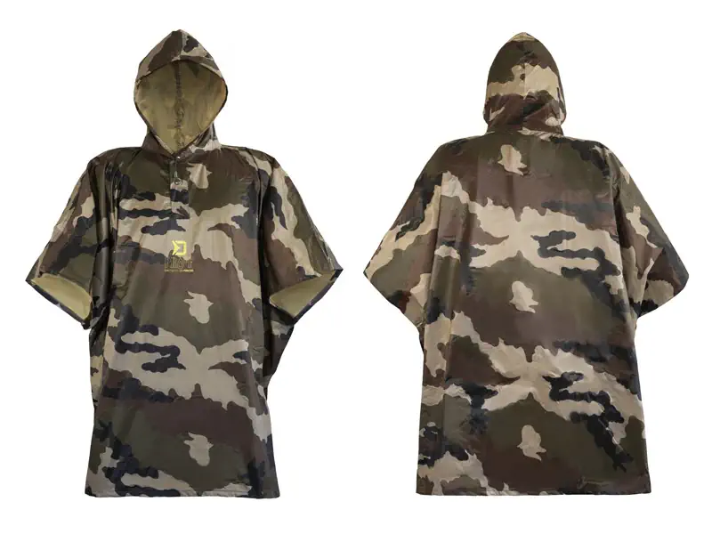 Ideaalne valik vihmasteks päevadeks – Delphin PROOF Poncho kaitseb sind täielikult halva ilma eest ning üllatab oma kompaktse transpordi suurusega. Poncho on valmistatud vastupidavast veekindlast kangast, millel on liimitud õmblused ja kamuflaažmuster. PROOF Ponchol on reguleeritavate nööridega kapuuts. Rinnal ja külgedel on trukid, mis võimaldavad seda hõlpsasti selga panna ja tagavad täiusliku kaitse kogu kehale. Lõige on avar, et pakkuda rohkem mugavust halva ilma korral. Komplekti kuulub praktiline lukuga kott, mis sobib transportimiseks nii märjana kui kuivana, kaitstes teisi varustuse osi niiskuse eest.